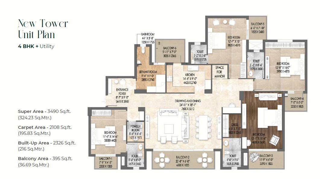 | Type 4 BHK Flats / Apartments | Super Area 3490 Sq.ft. | Price 3.49 Cr. | Floor Plan